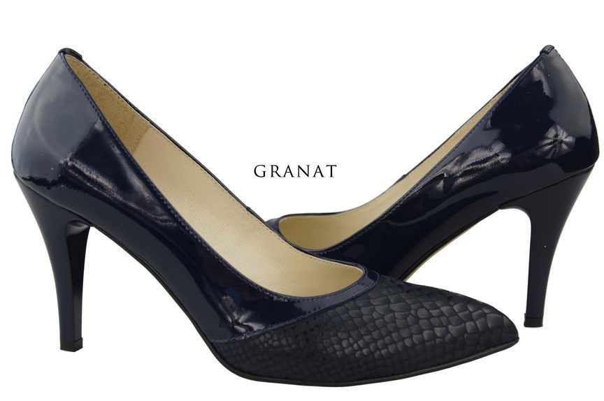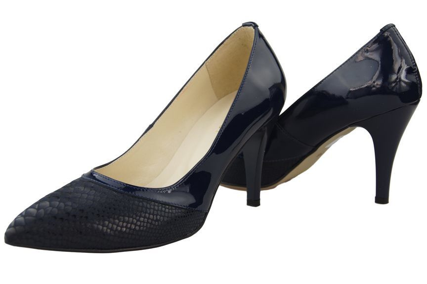 Damenschuhe Pumps mit Schuppenmotiv, Naturleder, Marineblau 951 ElitaBut