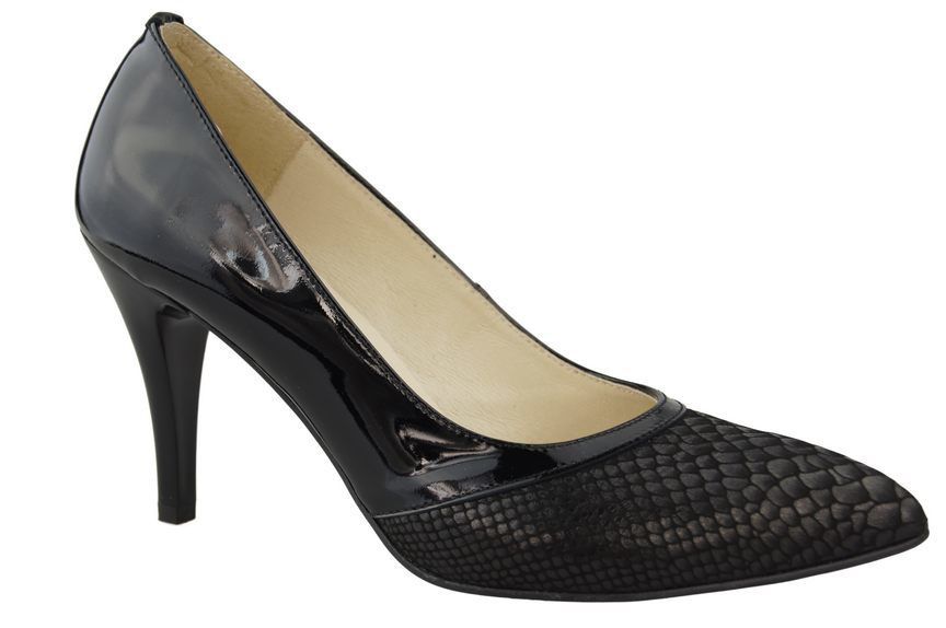 - Damenpumps aus hochwertigem Lackleder kombiniert mit Leder mit Schlangenhautmotiv