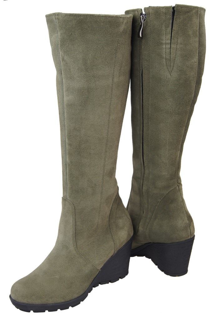 Schuhe Damenstiefel Wedge, natürliches Veloursleder 745 Bottle Green ElitaBut