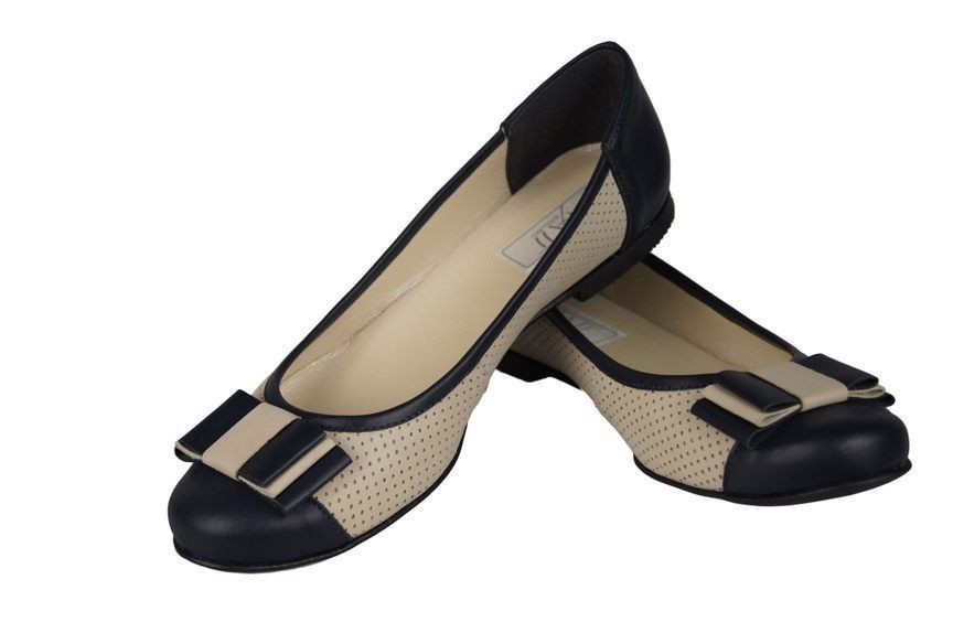 Durchbrochene Ballerinas für Damen, Naturleder, Marineblau-Beige 718 ElitaBut