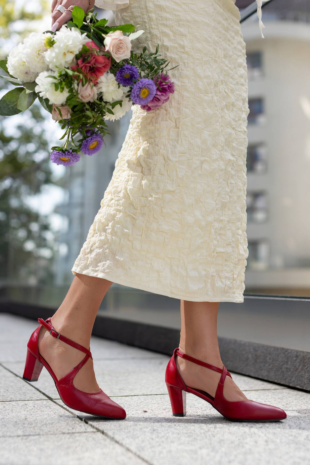 Damenschuhe Sandalen Niedriger Absatz Rotes Naturleder 102 ElitaBut