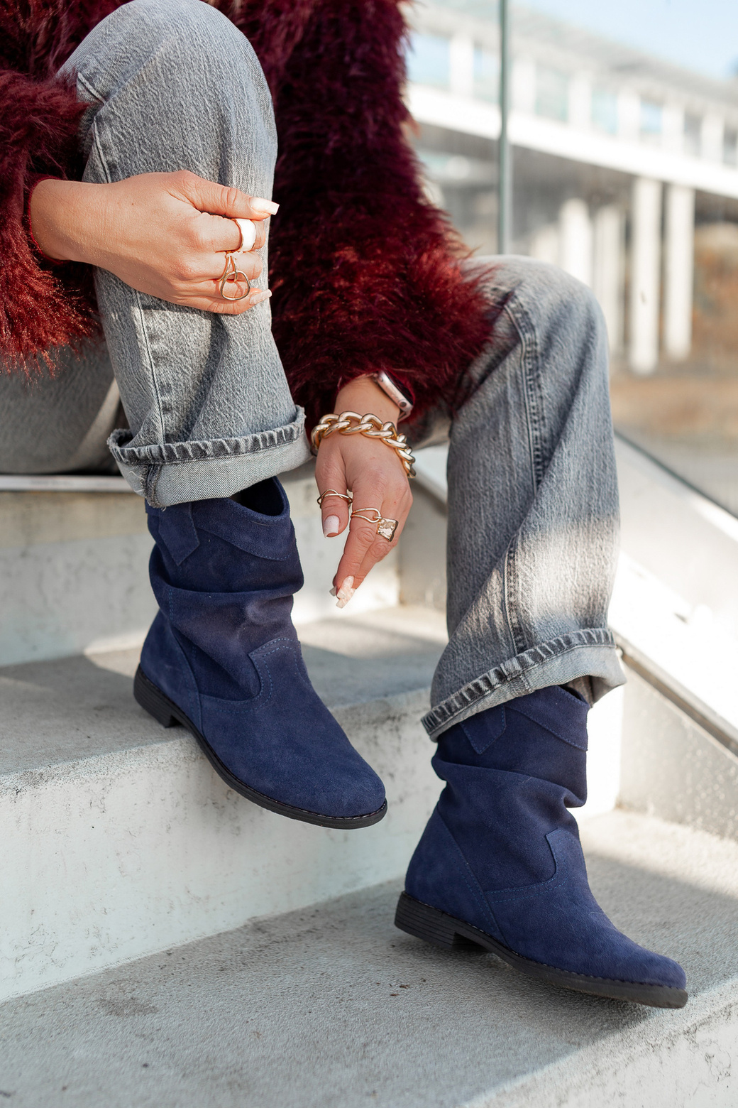 Schuhe Damen-Stiefeletten Frühling/Herbst Naturveloursleder Marineblau 117 L ElitaBut
