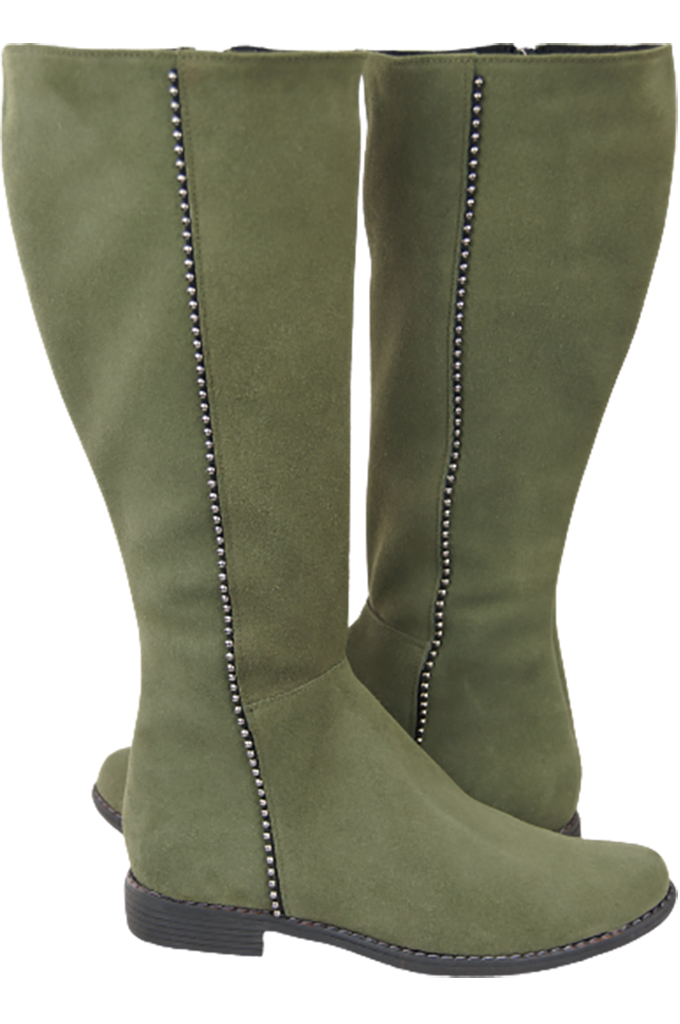 Schuhe Damenstiefel, Naturleder, Velour 153, Flaschengrün, ElitaBut