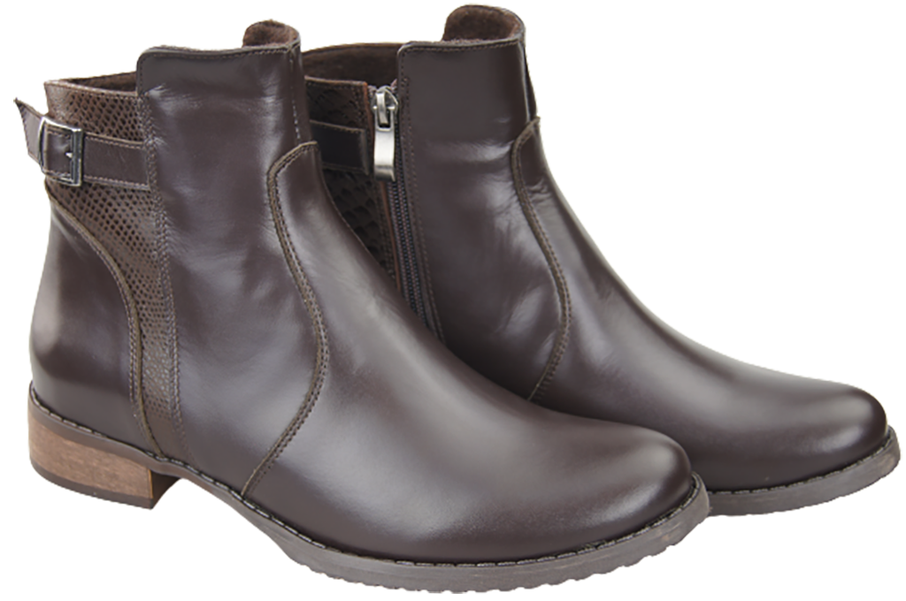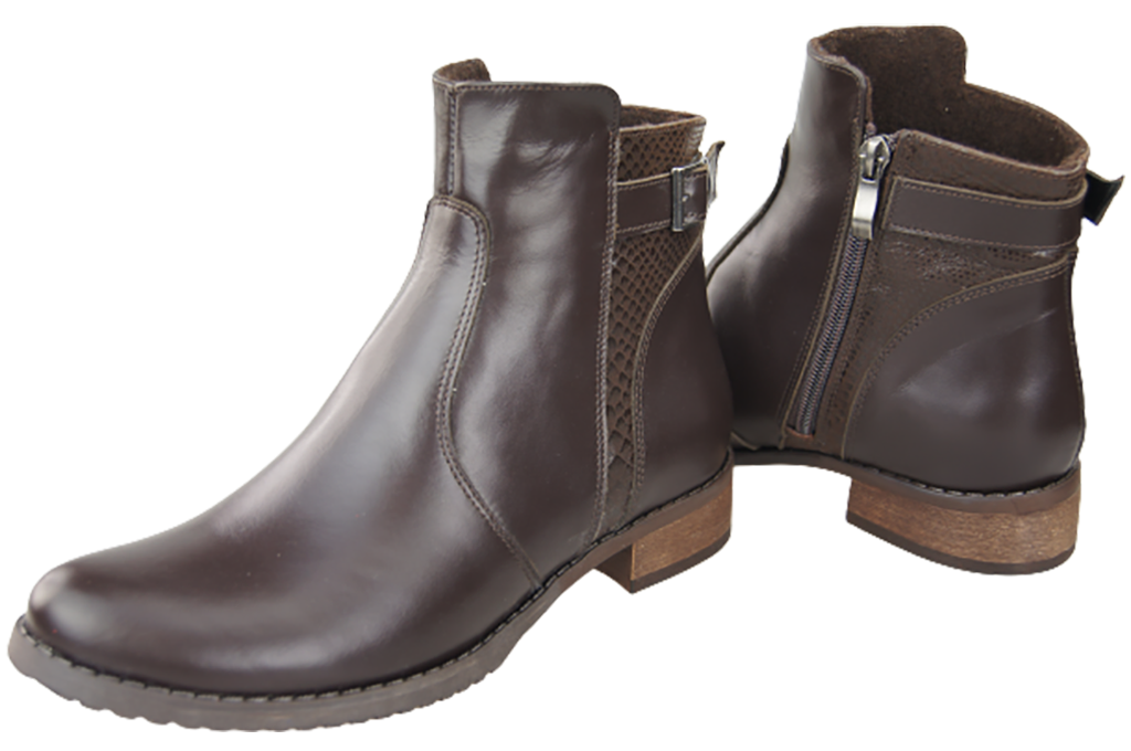 • Damenstiefel aus natürlichem Narbenleder, kombiniert mit natürlichem Leder, das mit einem Schlangenhautmotiv geprägt ist.
