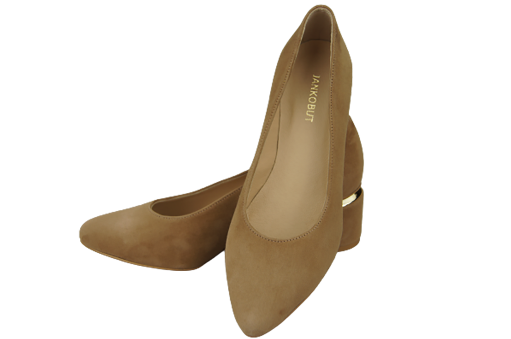 - Die Absätze sind mit natürlichem Wildleder überzogen