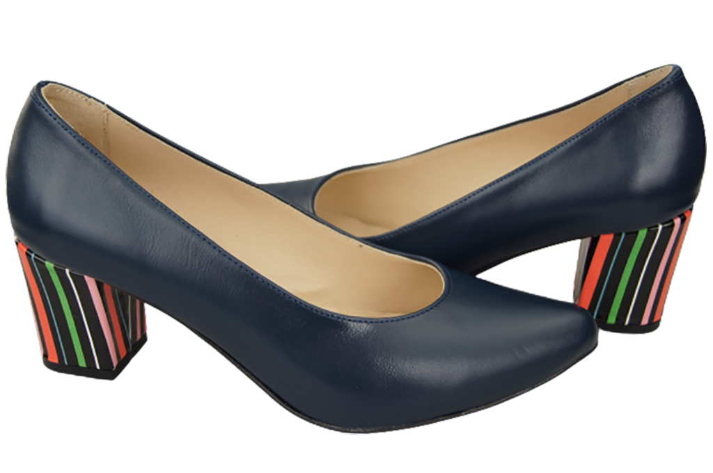 Damenschuhe Marineblaue Pumps aus Naturleder mit dekorativem Absatz 158 ElitaBut