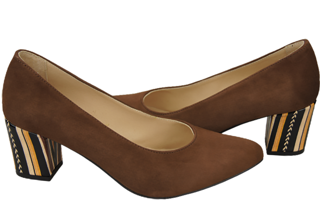 Damenschuhe Pumps Braunes natürliches Wildleder mit dekorativem Absatz 158 von ElitaBut