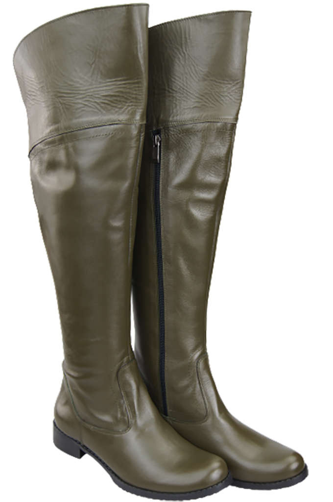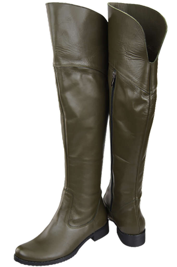 Schuhe Damenstiefel Stiefel Overknee-Stiefel, Naturleder, Oliv 638 ElitaBut