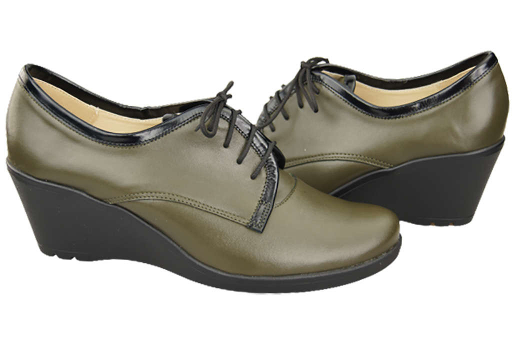 Schuhe Damen-Keilschuhe, Naturleder, Olive 181 ElitaBut