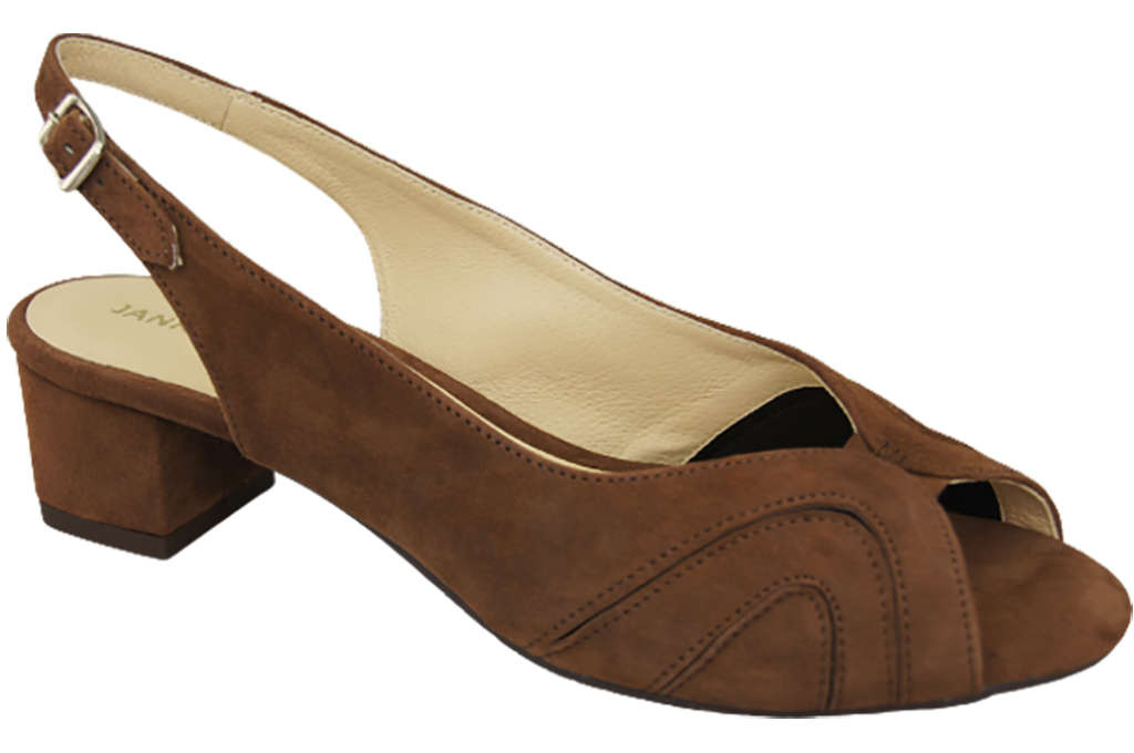 • Stabilität und Halt für die Füße bietet der perfekt geformte, mit Naturleder überzogene niedrige Absatz.