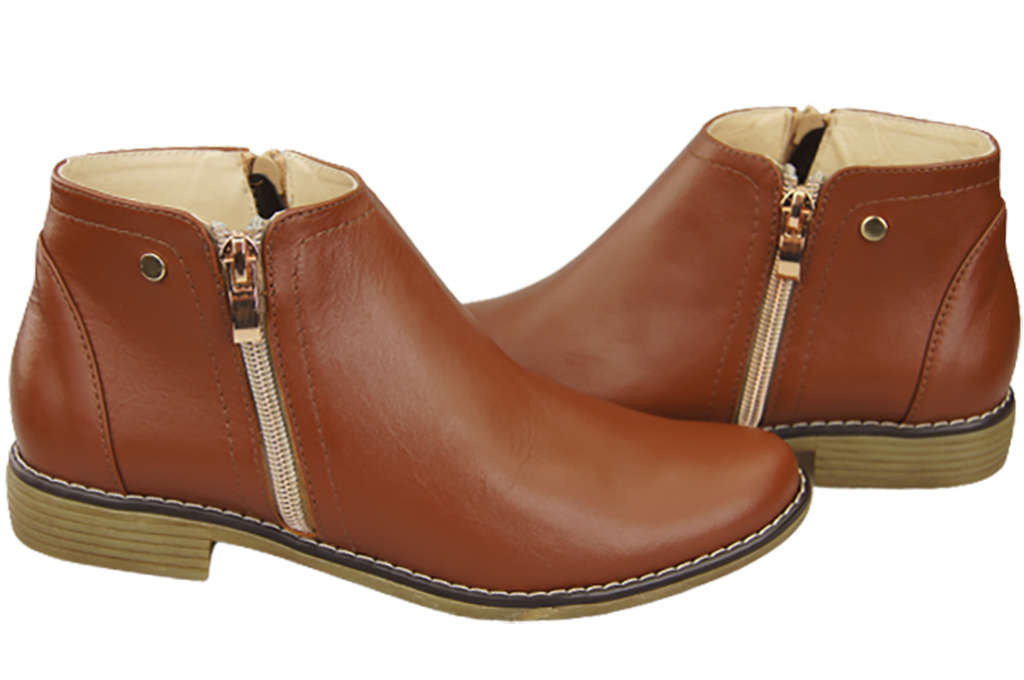 - Damenstiefel mit flachem Absatz aus hochwertigem Vollnarbenleder