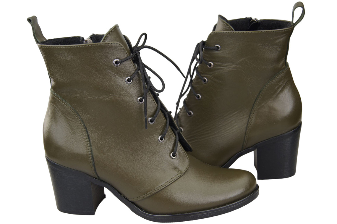 Damen Winter-Schnürstiefel, Naturleder, Olive 188, von ElitaBut
