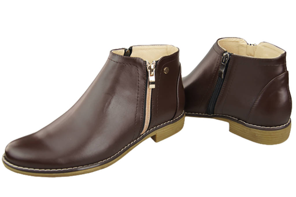 - An den Seiten des Schafts befinden sich zwei Reißverschlüsse, ein goldener Zierreißverschluss und ein schwarzer, der das Anziehen der Schuhe erleichtert