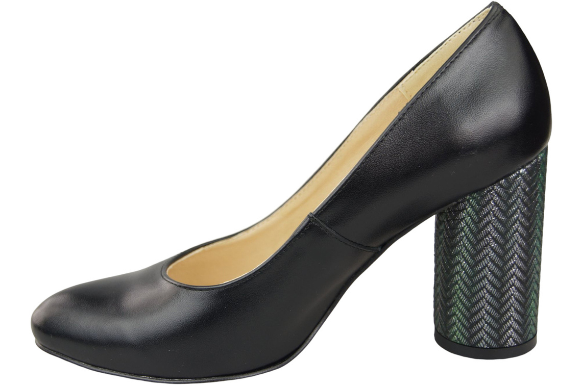 Damenschuhe Pumps Schwarz Naturleder Bunter Zierabsatz 194 ElitaBut