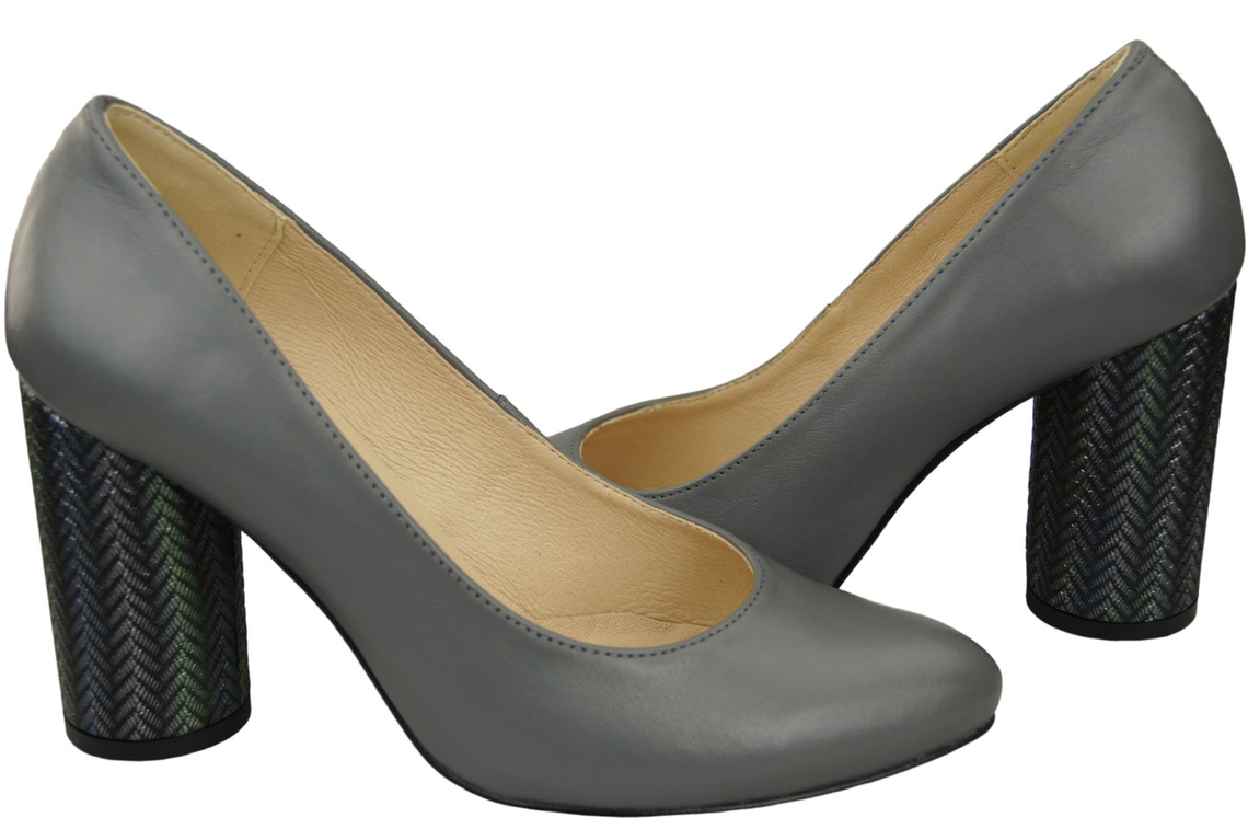 Damenschuhe Pumps Grau Naturleder Bunter dekorativer Absatz 194 ElitaBut