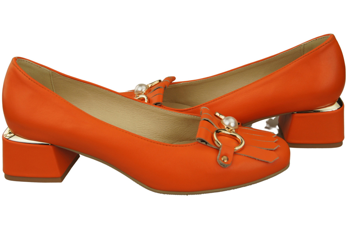 Damenschuhe Pumps verziert mit Fransen Orange Naturleder 195 ElitaBut