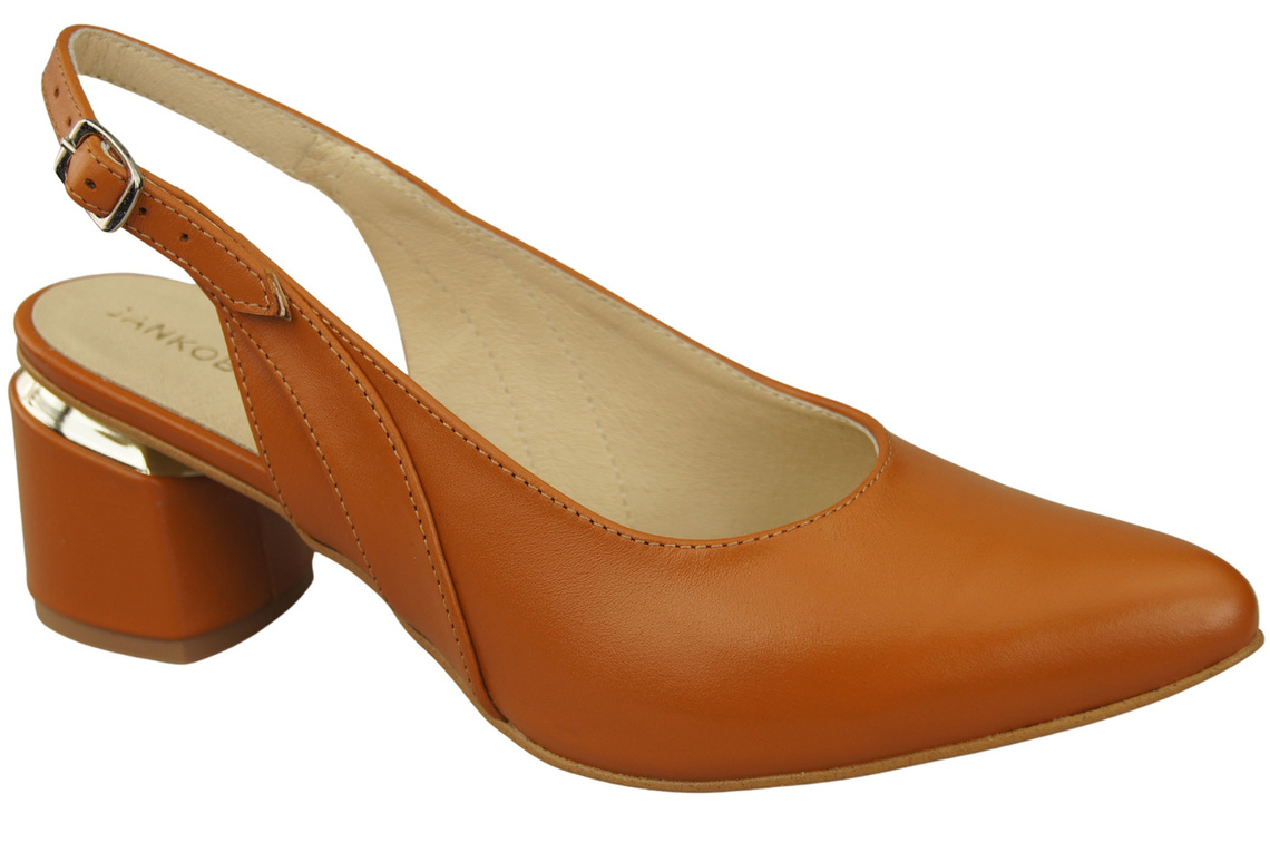 - Ein origineller, breiter, mit Leder bezogener Zierabsatz zieht die Blicke auf sich und verleiht diesem Modell einen Hauch von Extravaganz.