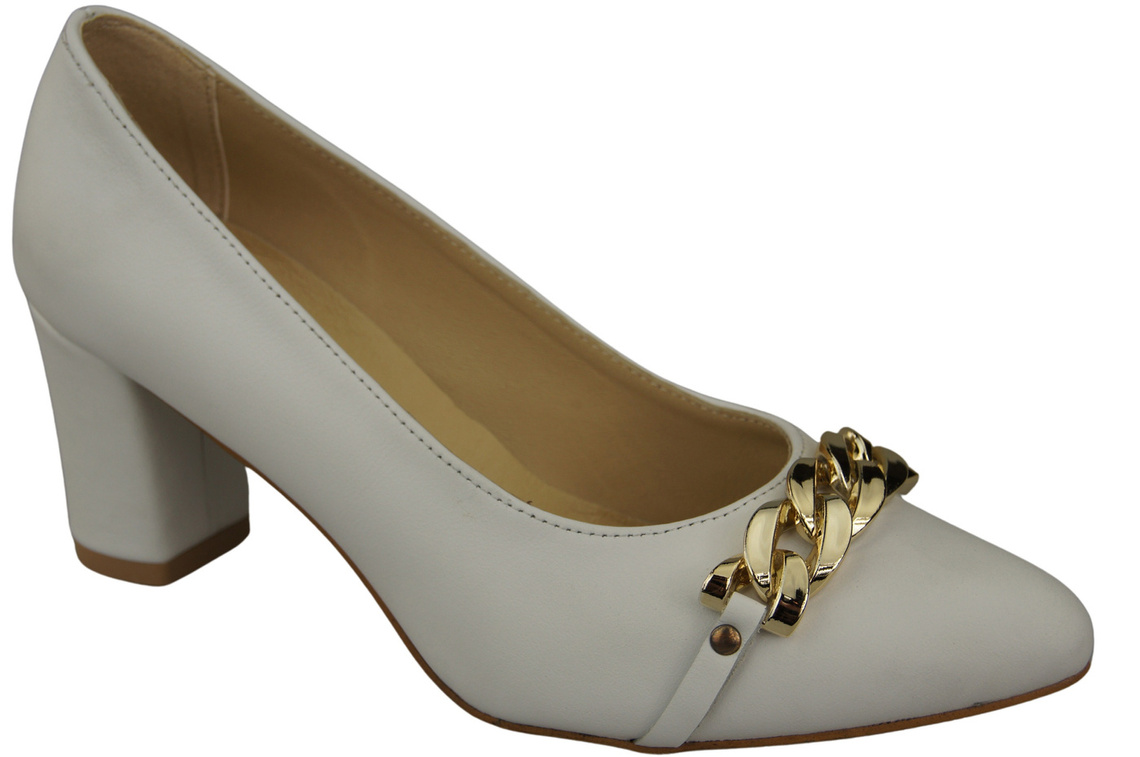 Klassische Frauen Weiß Naturleder Schuhe mit Gold Ornament Kette 200 ElitaBut