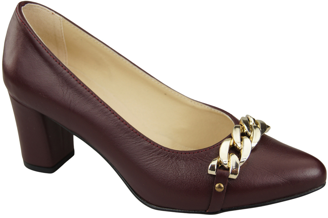 Klassische Frauen Burgunderrot Naturleder Schuhe mit Gold Ornament Kette 200 ElitaBut