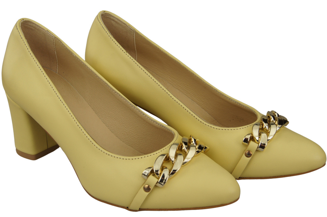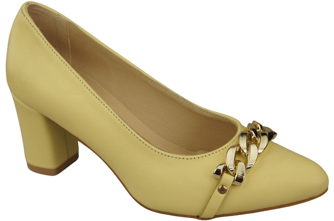 Klassische Frauen Banana Naturleder Schuhe mit Gold Ornament Kette 200 ElitaBut