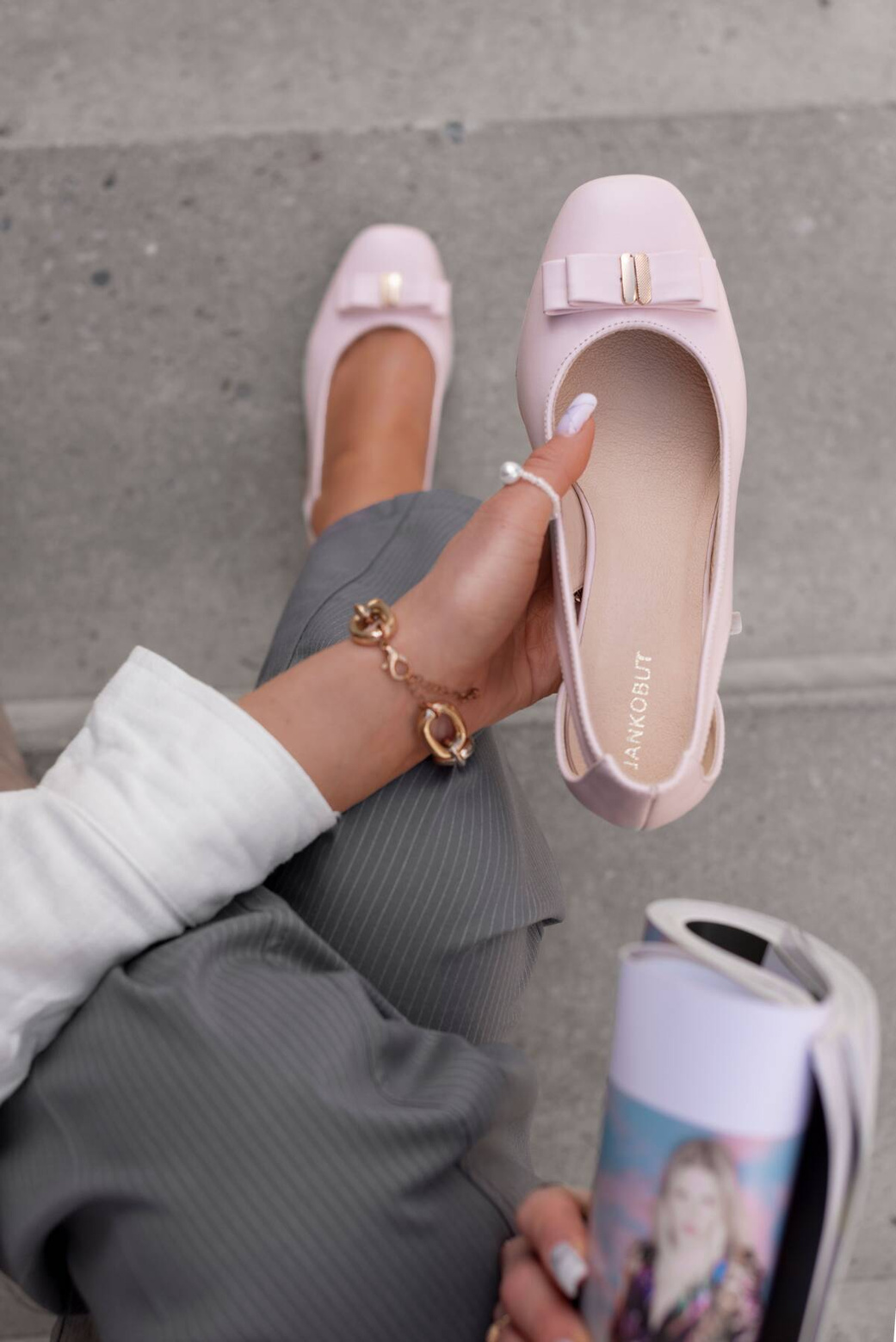 • Die Vorderseite der Schuhe ist mit einer charmanten Schleife verziert, die einen zarten und femininen Touch verleiht.