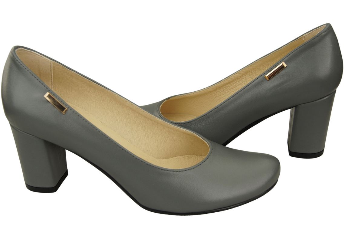 Klassische Damen Grau Leder Mandel Nase Pumps 201 ElitaBut