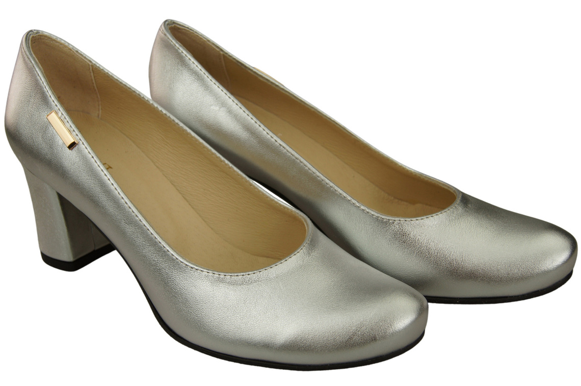 Klassische Damen Silber Leder Mandel Nase Pumps 201 ElitaBut
