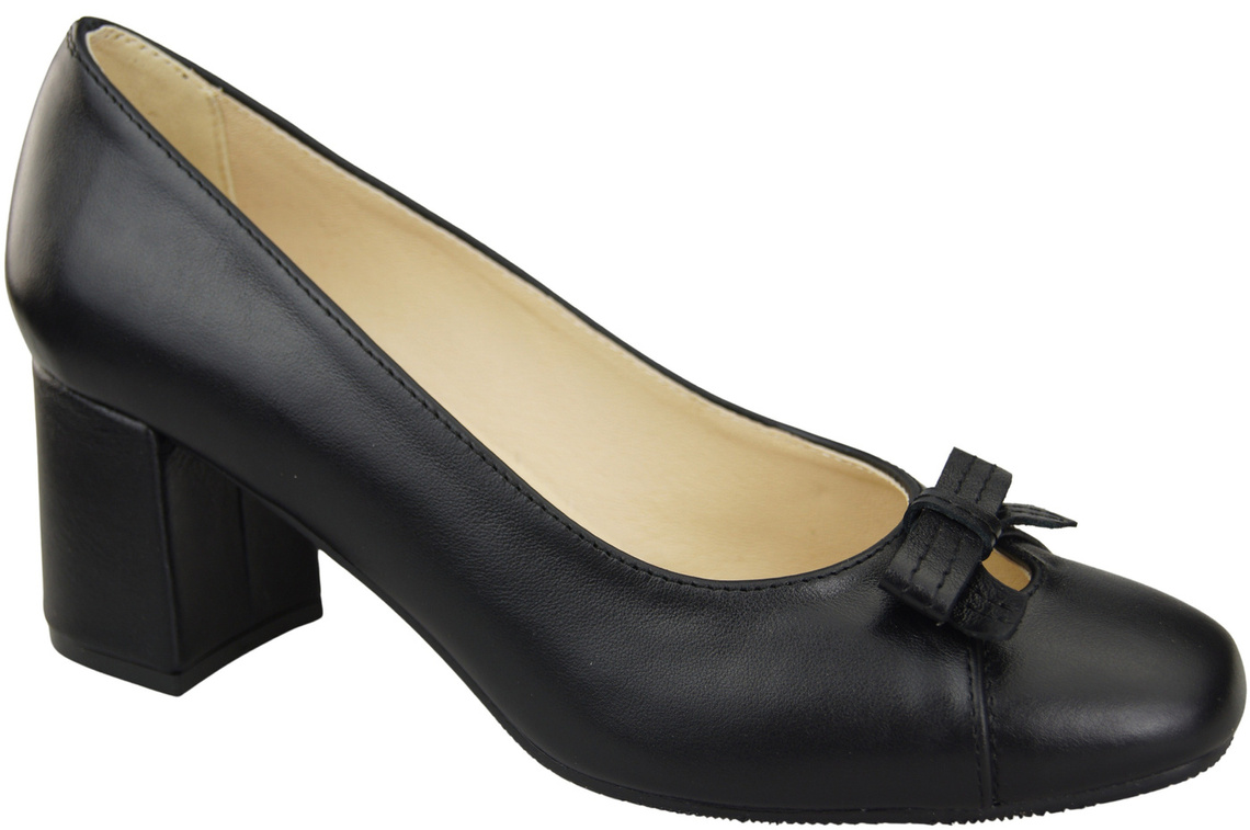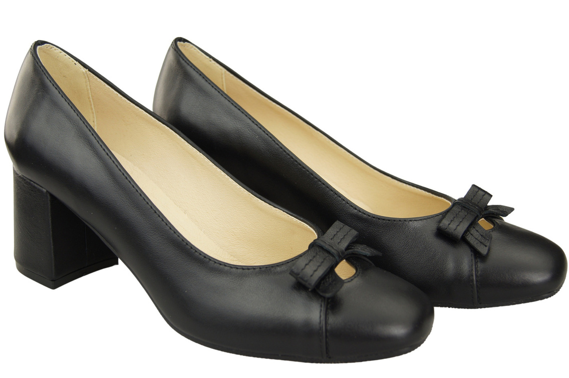 Damen Pumps mit Schleife Schwarz Naturleder und niedrigem Absatz 203 ElitaBut