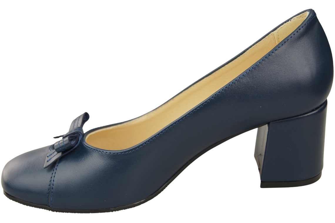 Damen Pumps mit Schleife Marineblau Naturleder und niedrigem Absatz 203 ElitaBut
