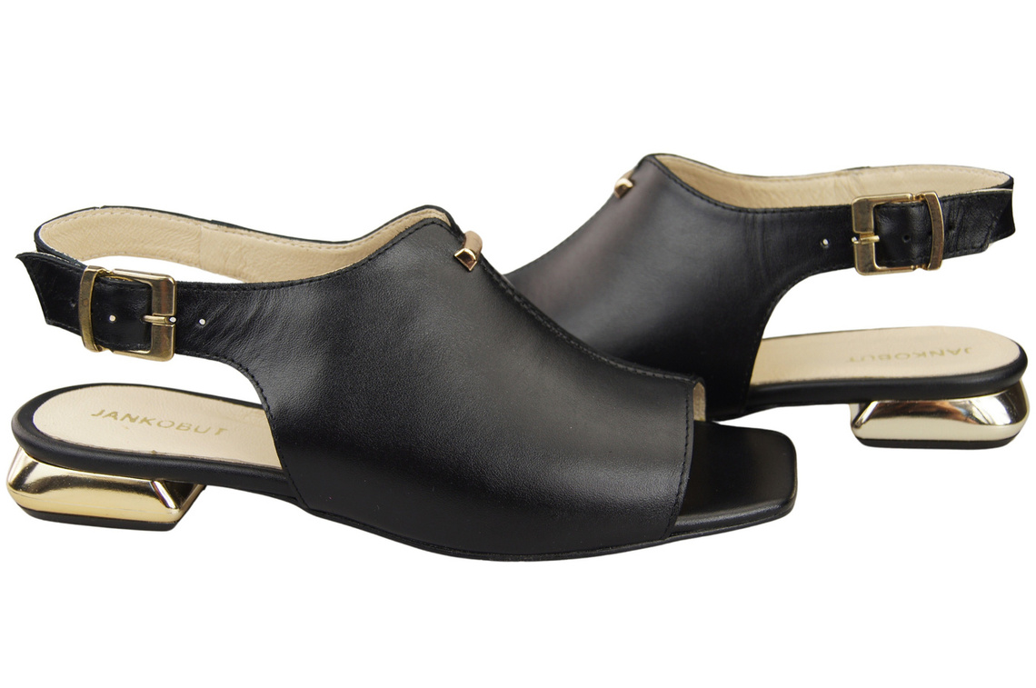 Bequeme Frauenschuhe Sandalen Schwarz Flacher Goldabsatz Naturleder 207 ElitaBut