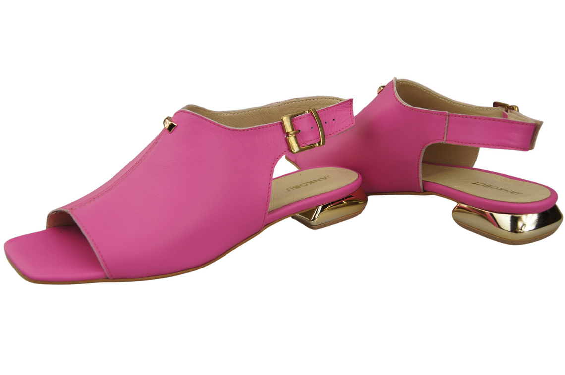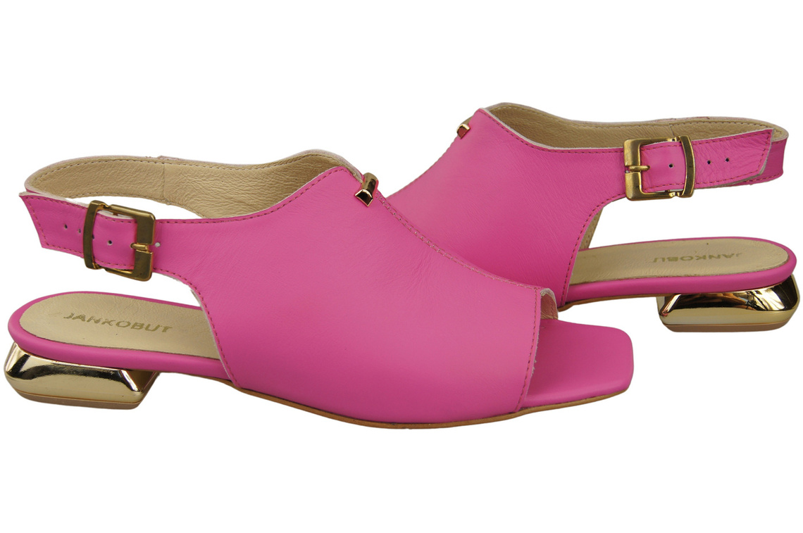 Bequeme Frauenschuhe Sandalen Fuchsie Flacher Goldabsatz Naturleder 207 ElitaBut