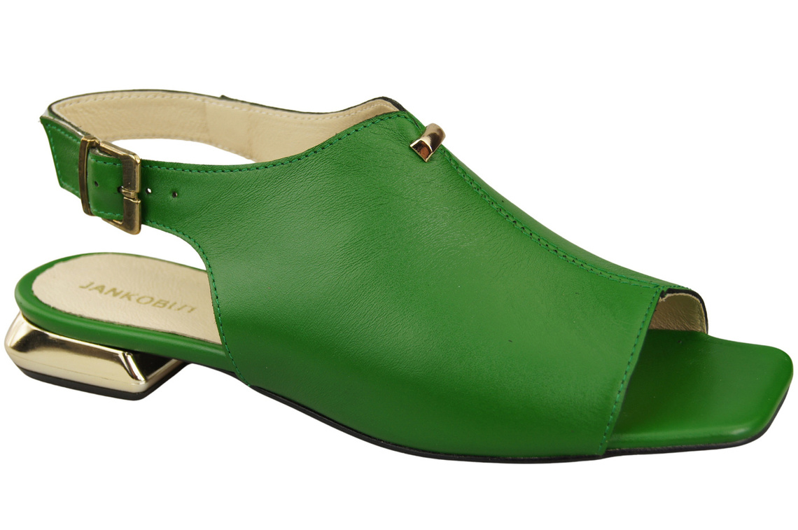 Bequeme Frauenschuhe Sandalen Grün Flacher Goldabsatz Naturleder 207 ElitaBut