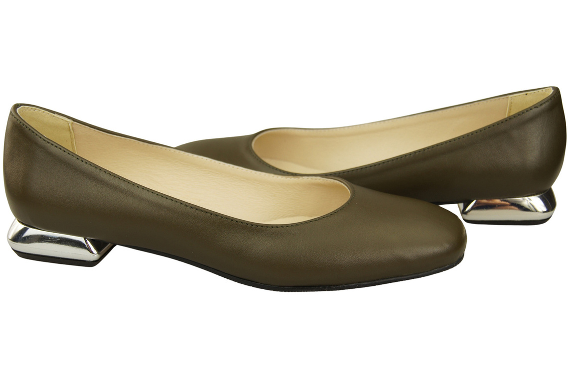 Flache Frauen Schuhe Olive Dekorative Ferse Naturleder 209 ElitaBut