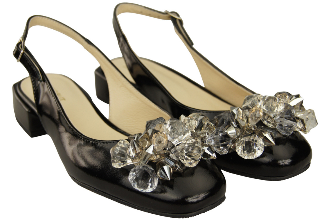 Damen Schuhe Schwarz glänzend Sandalen mit Kristallen Naturleder 215 ElitaBut