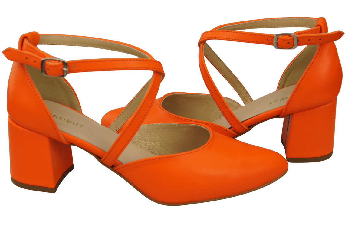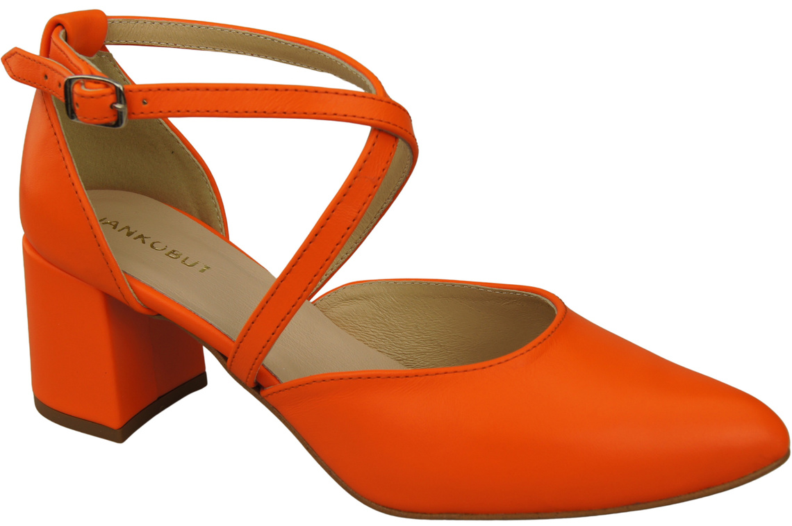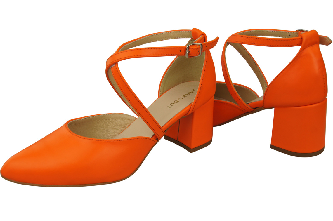 Elegante Orange Ledersandalen mit offener Seite und stabilem Absatz 218 ElitaBut