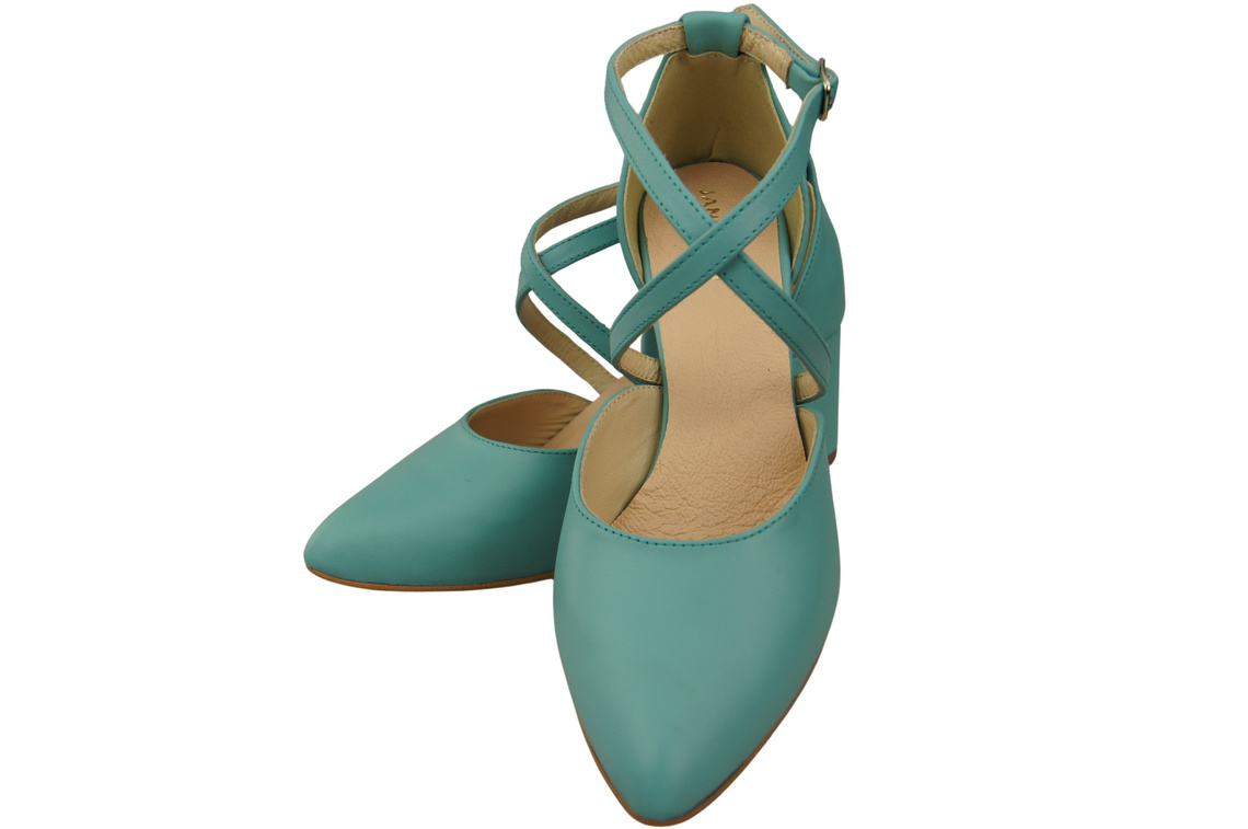 Elegante Türkis Ledersandalen mit offener Seite und stabilem Absatz 218 ElitaBut