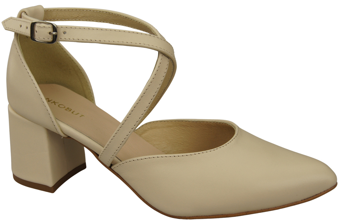 Elegante Beige Ledersandalen mit offener Seite und stabilem Absatz 218 ElitaBut