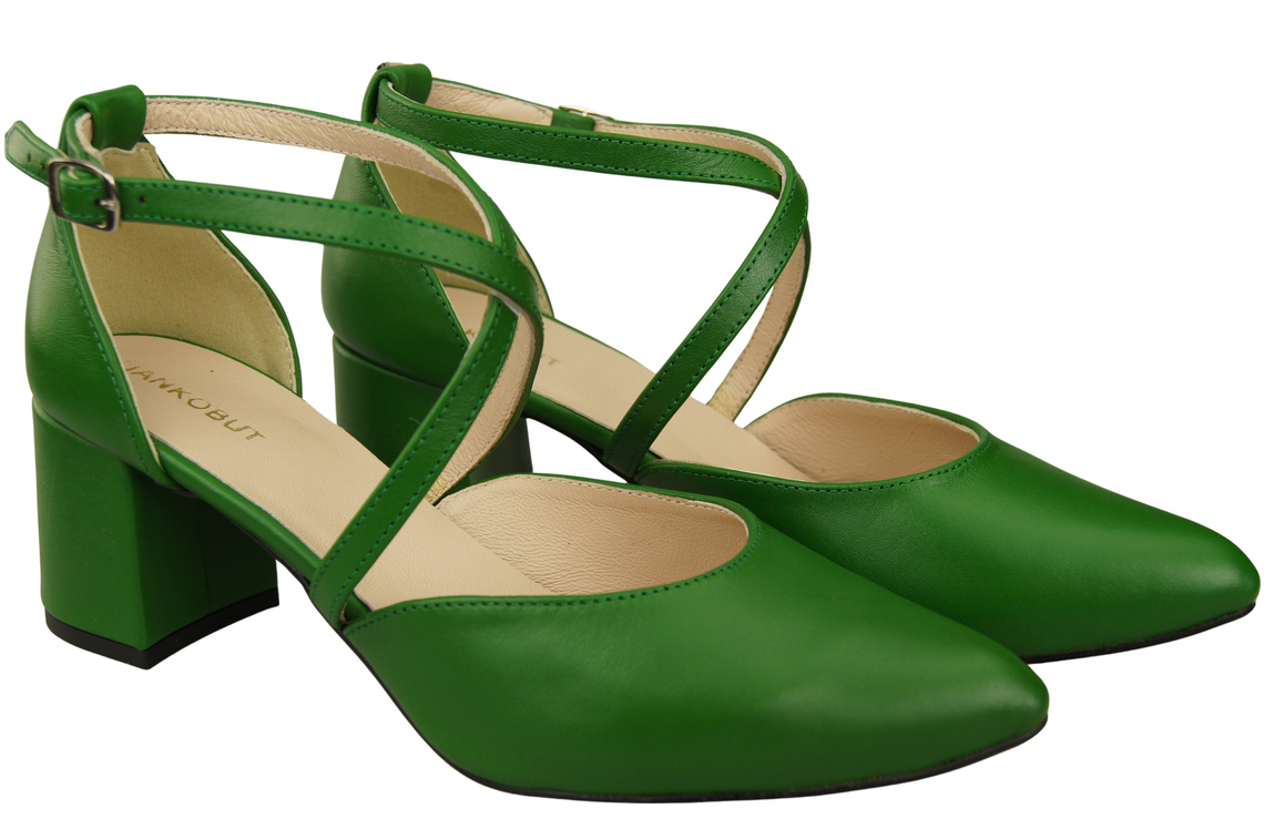 Elegante Grün Ledersandalen mit offener Seite und stabilem Absatz 218 ElitaBut