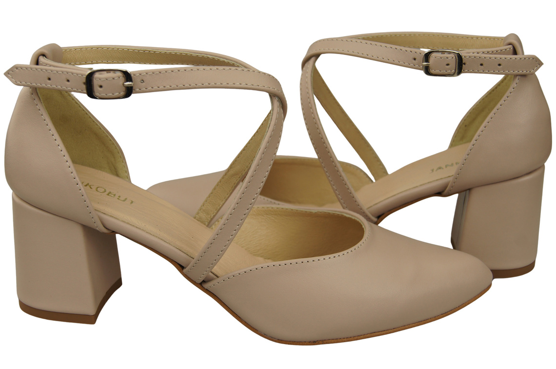 Elegante Cappuccino Blass Ledersandalen mit offener Seite und stabilem Absatz 218 ElitaBut