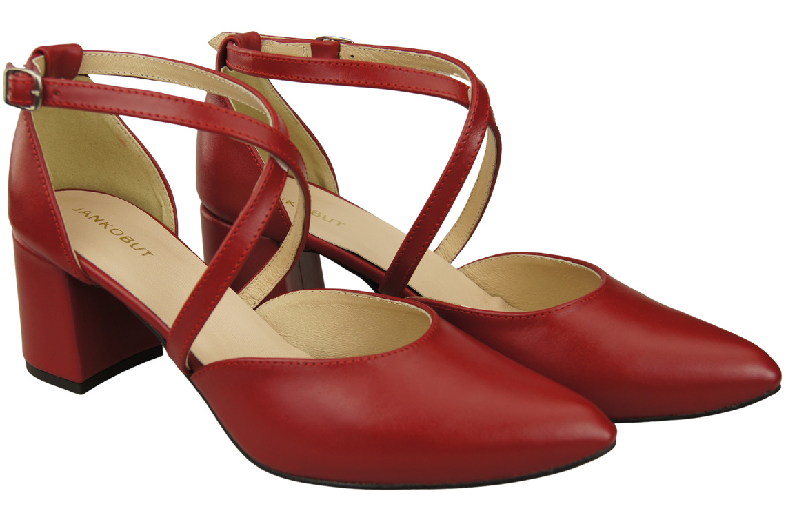 Elegante Rot Ledersandalen mit offener Seite und stabilem Absatz 218 ElitaBut