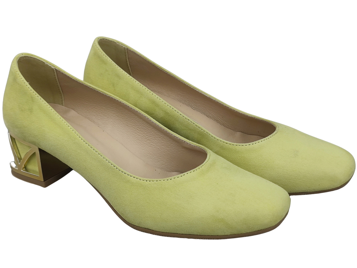 Bequeme Damenschuhe Banane Pumps mit dekorativem Absatz Natürliches Wildleder 219 von ElitaBut