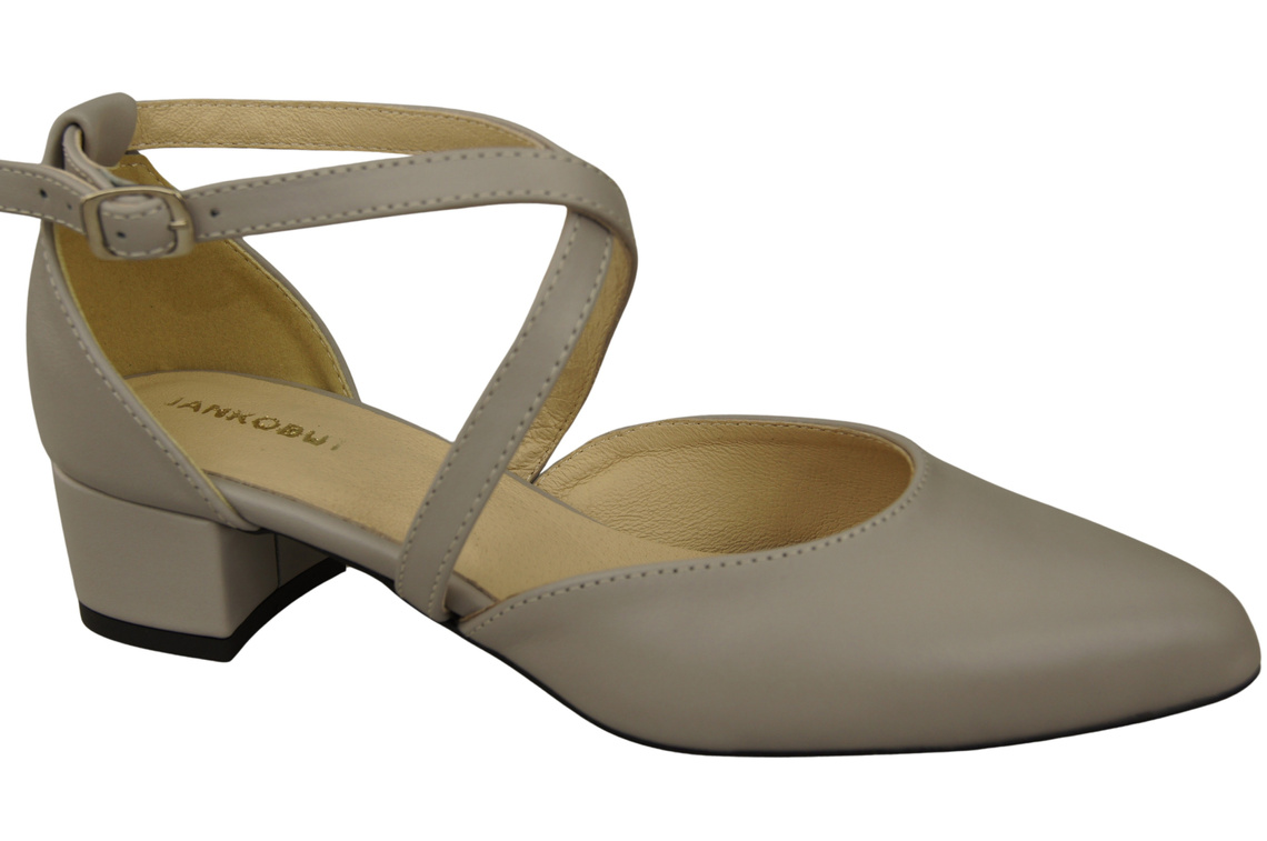 • Niedriger, stabiler Absatz mit Leder überzogen – bequem und sicher.