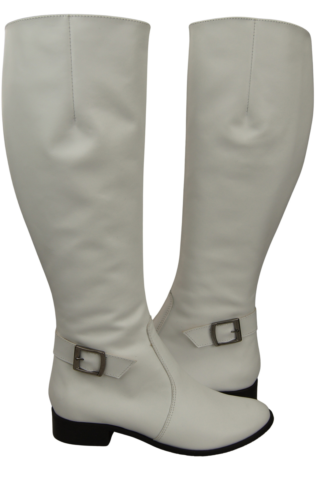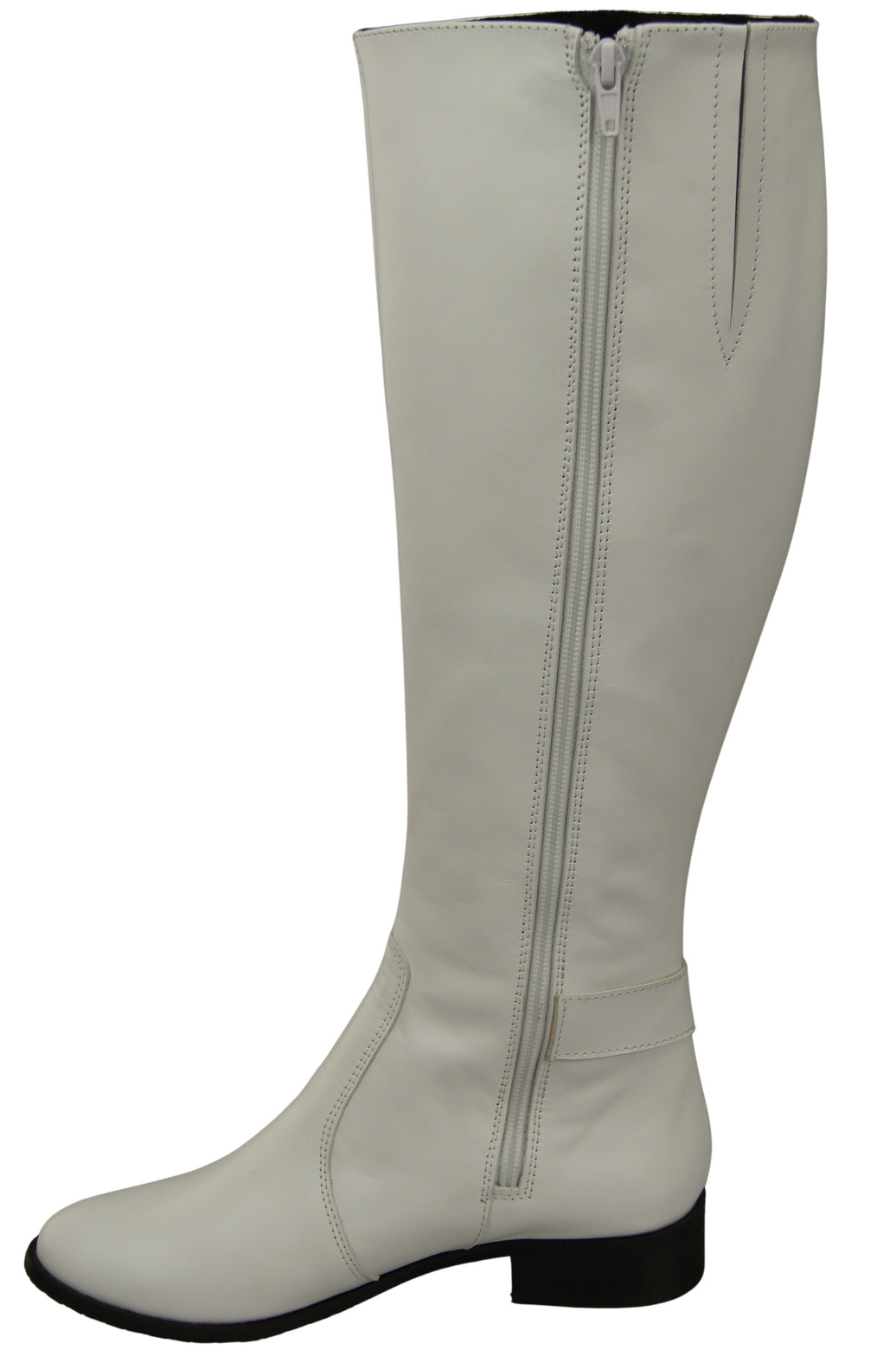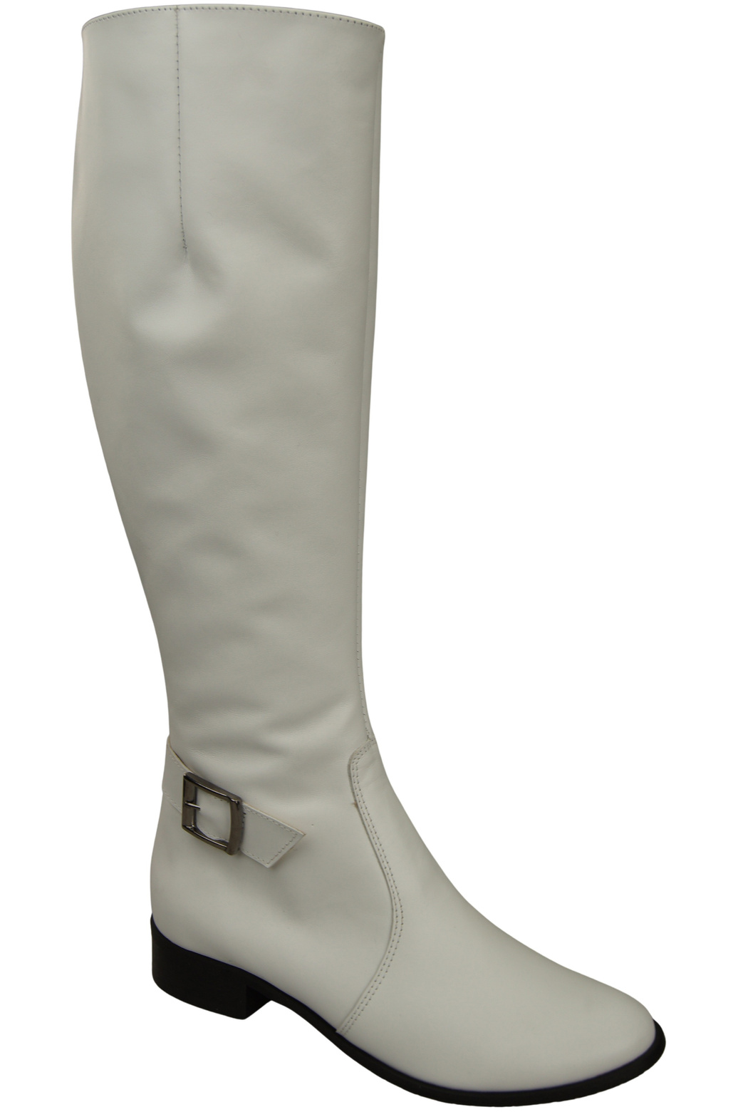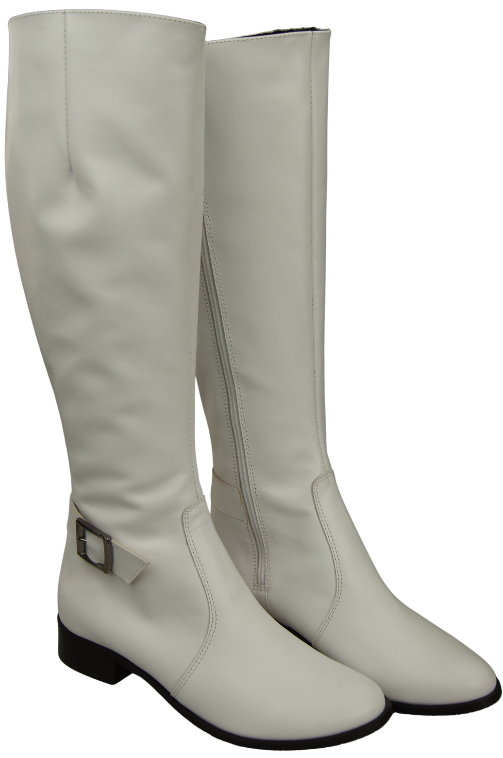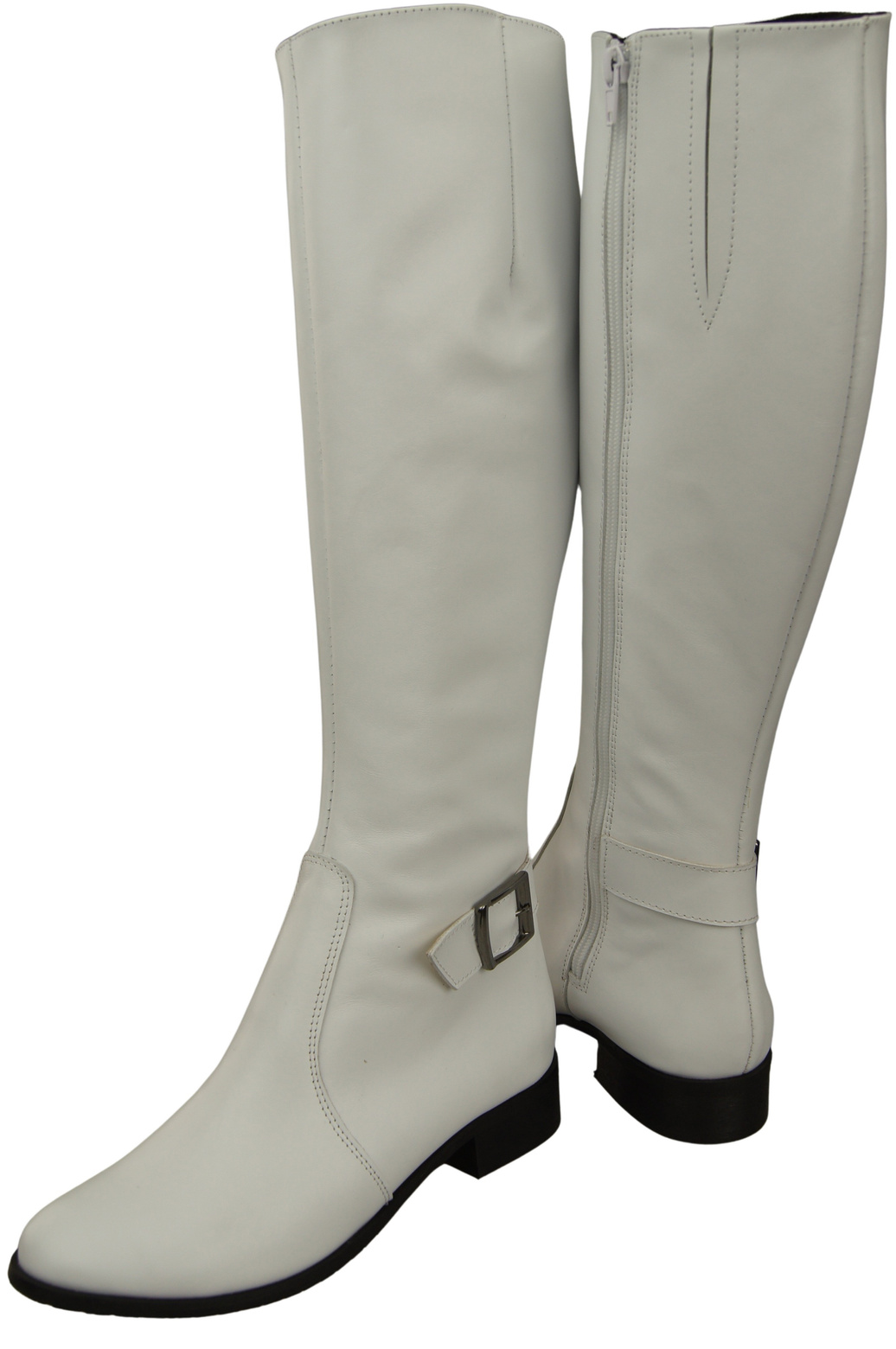 Damen-Lederstiefel Weiß Gefüttert Offiziersstiefel, Flach 225 ElitaBut
