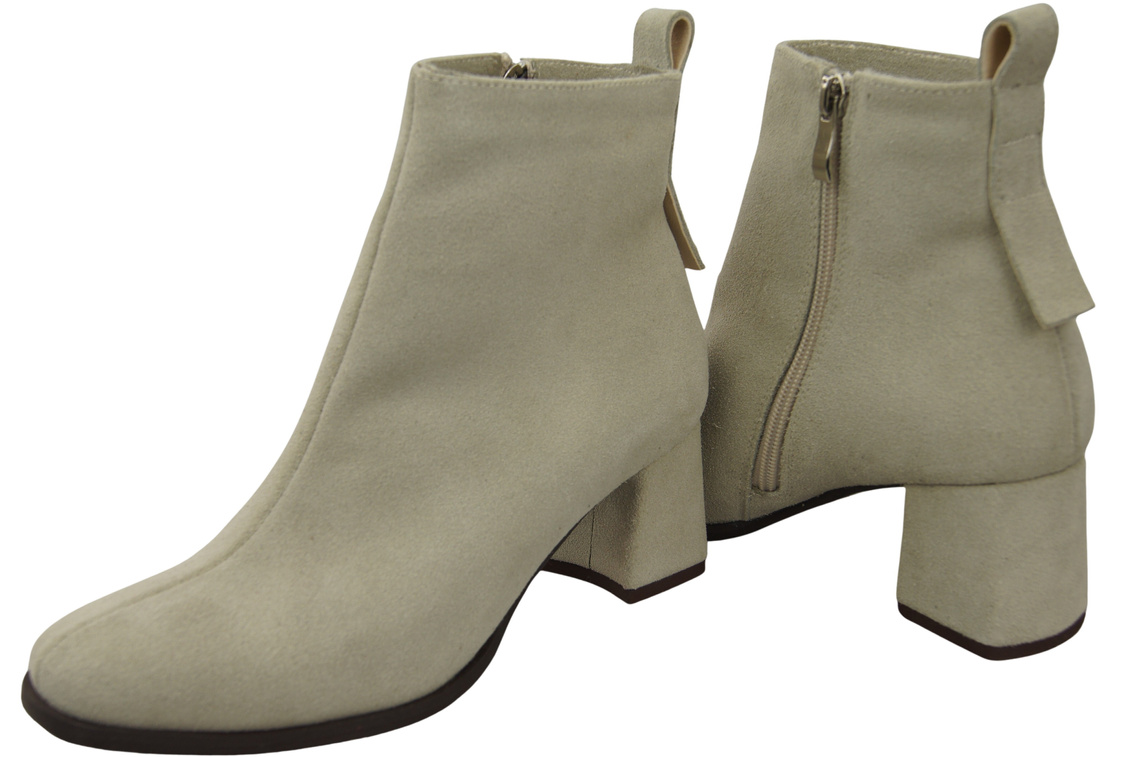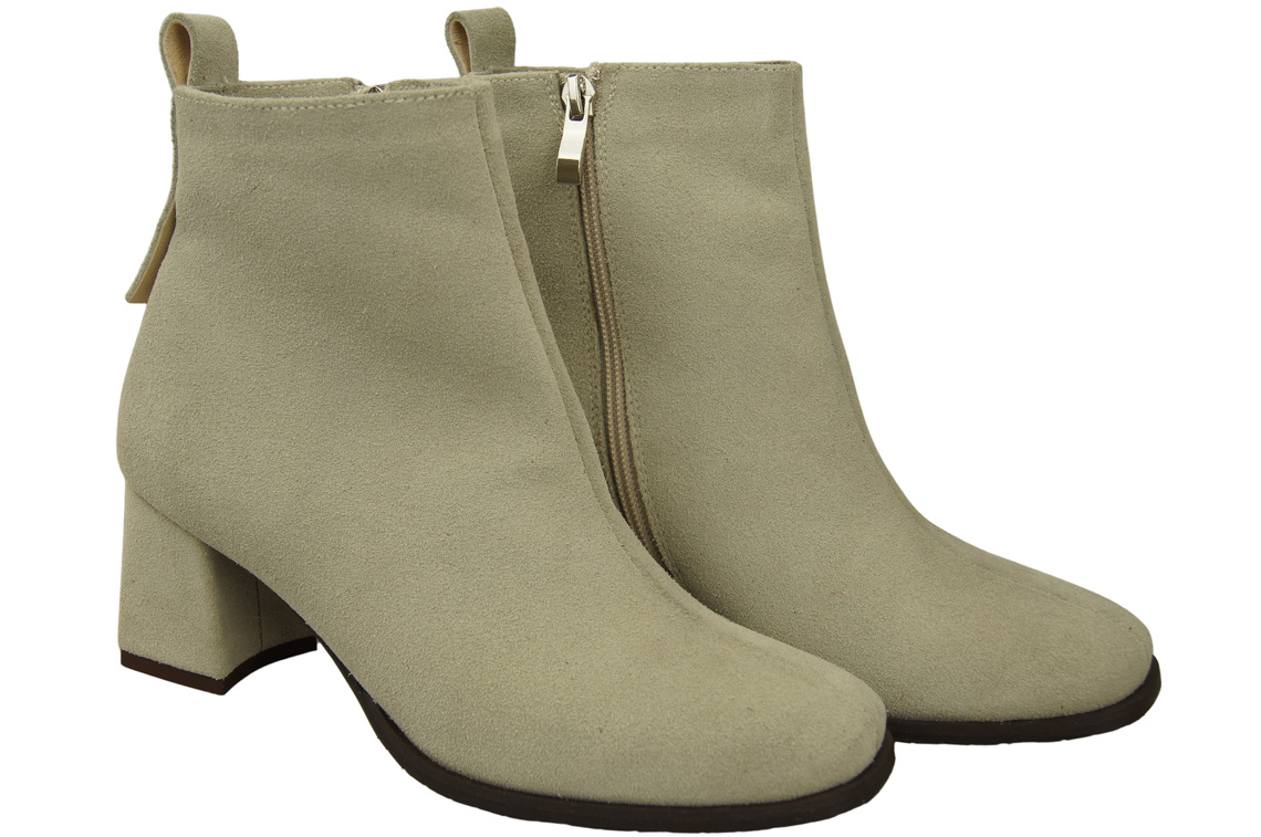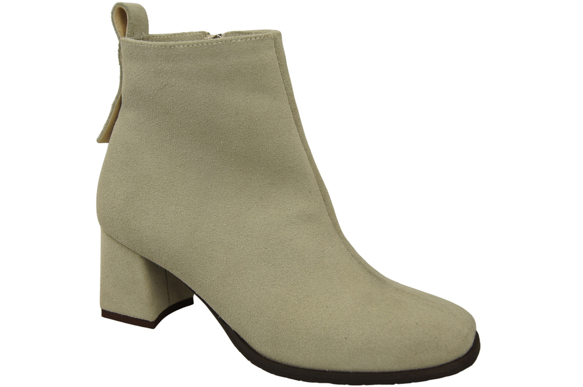 Damen Stiefeletten Beige aus Veloursleder, stabiler Blockabsatz, Reißverschluss 224 ElitaBut