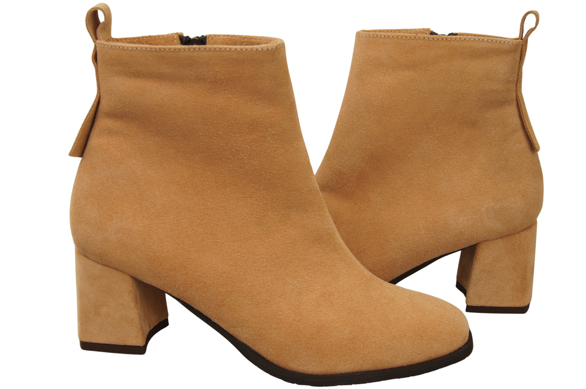 Damen Stiefeletten Pfirsich aus Veloursleder, stabiler Blockabsatz, Reißverschluss 224 ElitaBut