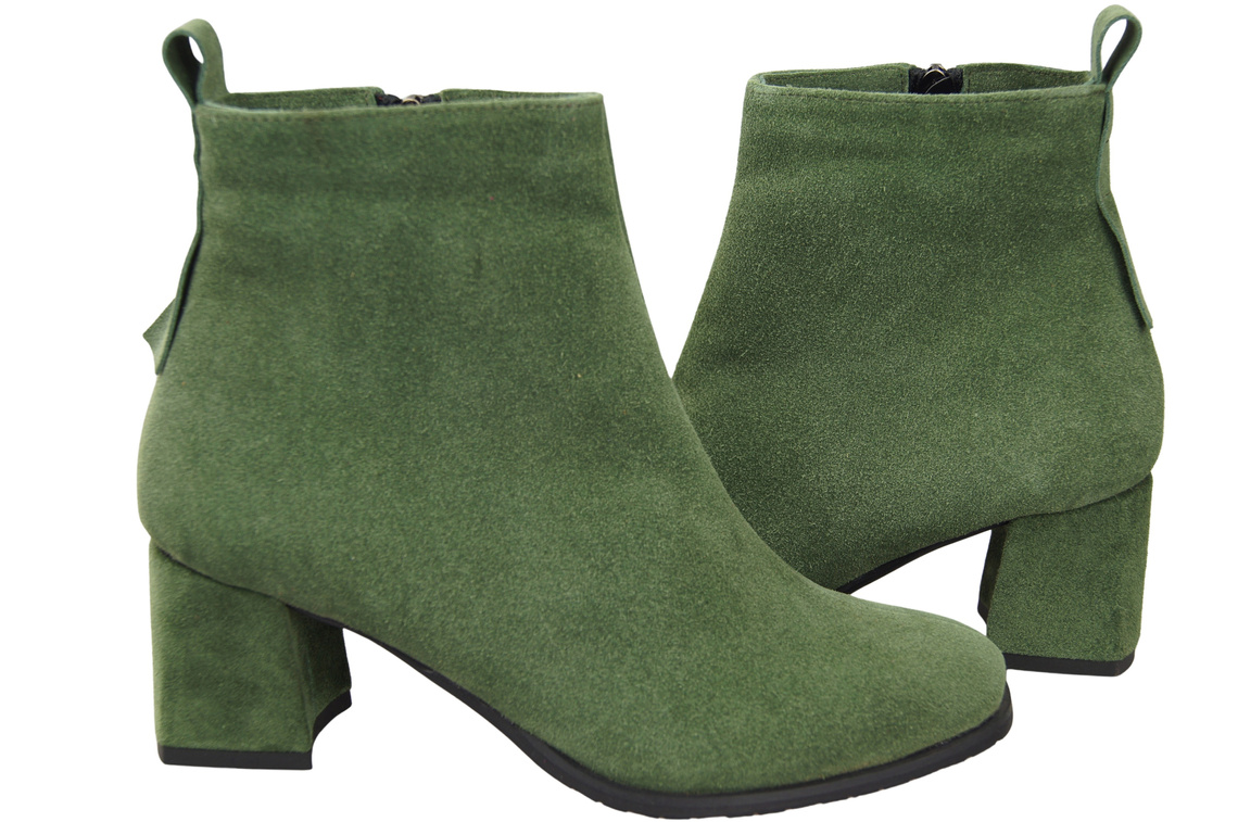 Damen Stiefeletten Flasche Grün aus Veloursleder, stabiler Blockabsatz, Reißverschluss 224 ElitaBut