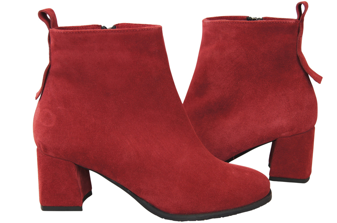 Damen Stiefeletten Burgund aus Veloursleder, stabiler Blockabsatz, Reißverschluss 224 ElitaBut