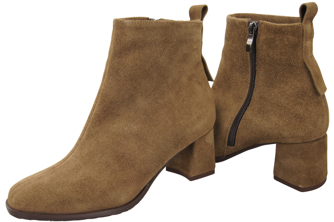 Damen Stiefeletten Mokka aus Veloursleder, stabiler Blockabsatz, Reißverschluss 224 ElitaBut