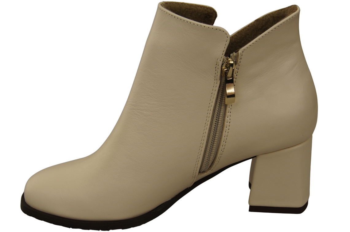 Damen-Stiefeletten ElitaBut 226 Beige aus Naturleder, gefüttert, eckige Zehenkappe, Blockabsatz